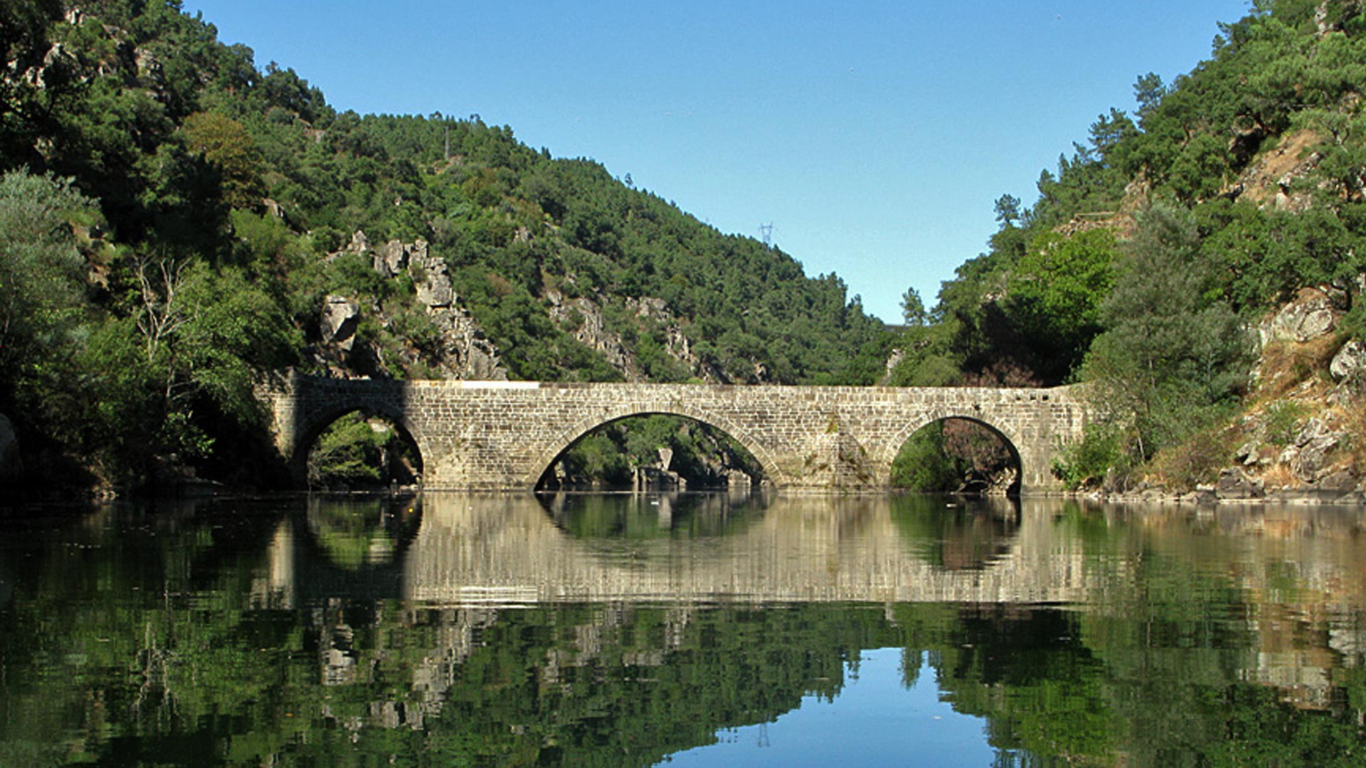 Ponte de Pedra emblemática na Vila de Freixo de Espada à Cinta. Encontra-se em bom estado de conservação.